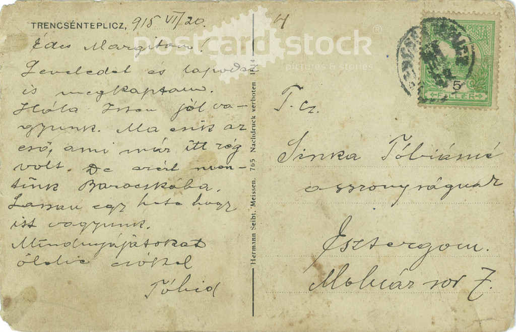 1915 - Trencsénteplicz Fürdő, Attila nyaraló. Eredeti régi fotó. Színezett fotólap, régi képeslap. (2793765)