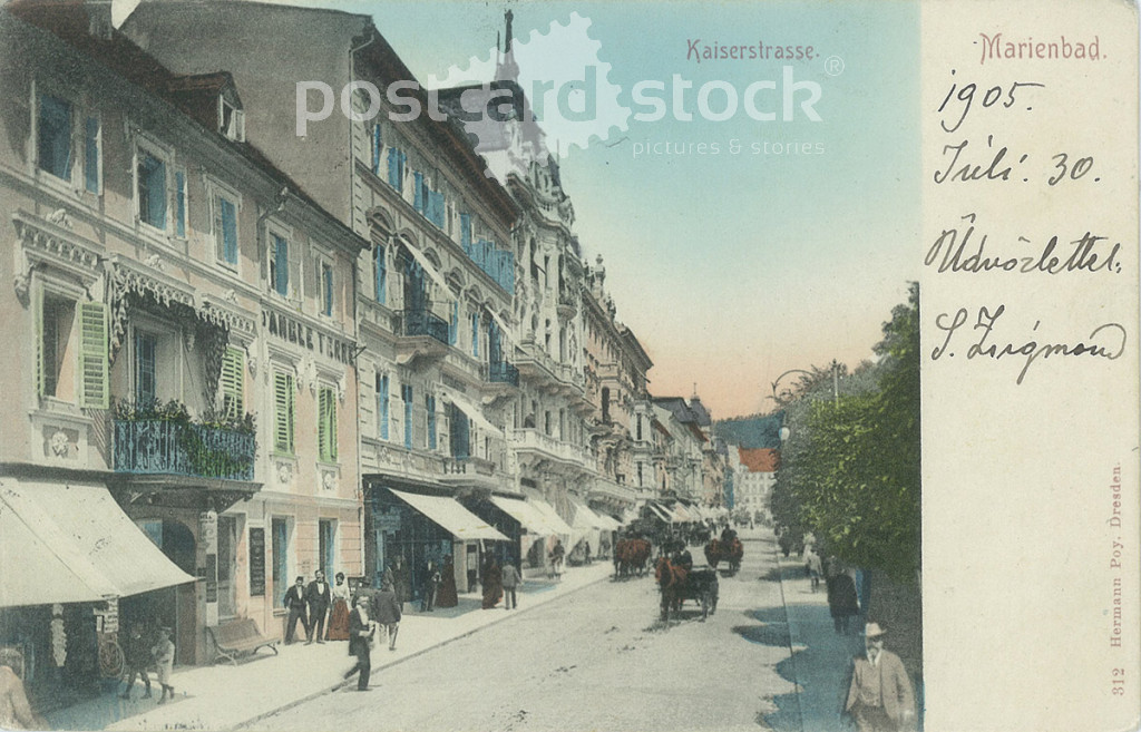 1905 - Kaiserstrasse, Marienbad. Eredeti régi fotó. Színezett fotólap, régi képeslap. (2793882)